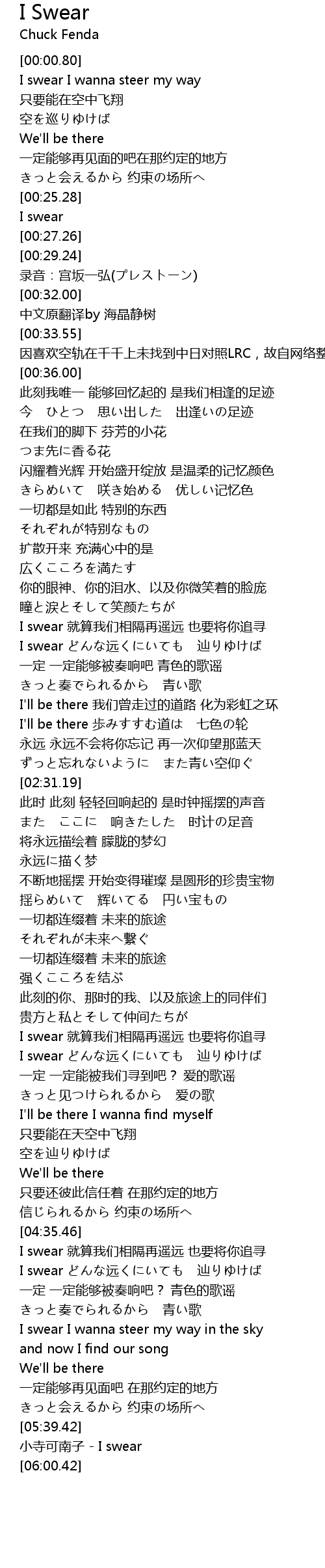 | [01:41.01] | I swear どんな远くにいても 辿りゆけば |