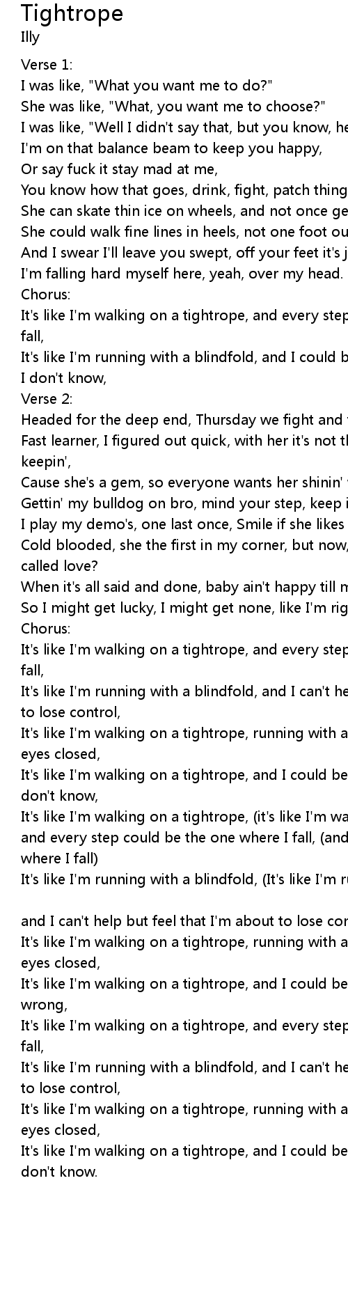 It's like I'm walking on a tightrope, and I could be wrong, and I could be wrong, |