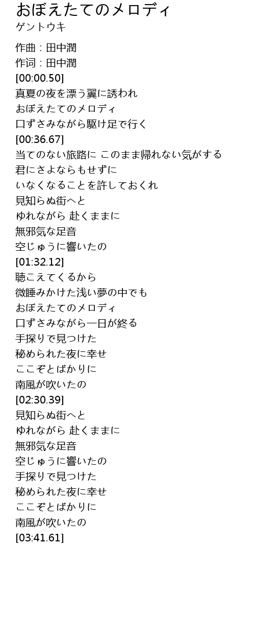 | [00:28.46] | 口ずさみながら駆け足で行く |