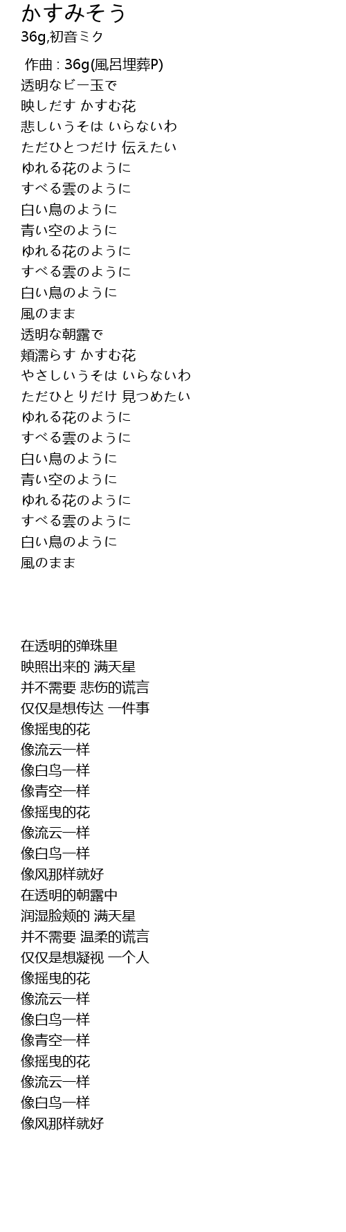 | [00:00.00] | 作曲 : 36g(風呂埋葬P) |