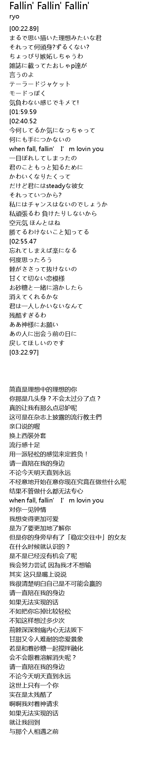 | [01:14.28] | when fall, fallin’ I’m lovin you |