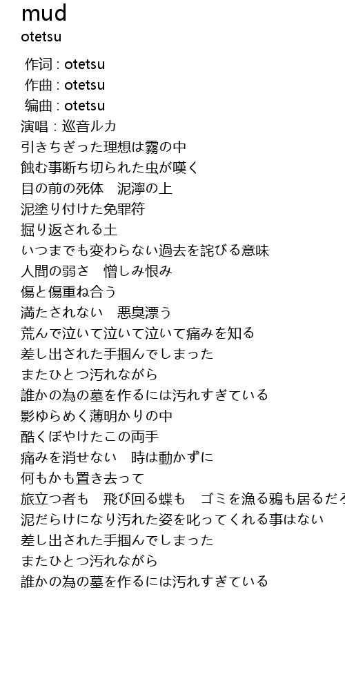 | [01:02.99] | 目の前の死体 泥濘の上 |