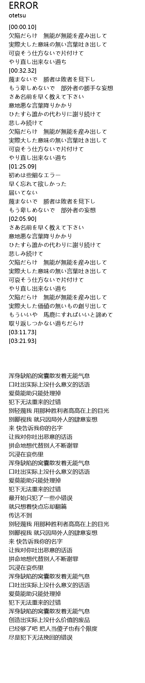 | [02:54.50] | 欠陥だらけ 無能が無能を産み出して |