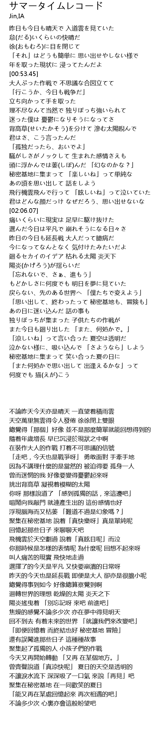 | [03:37.84] | 聚集在秘密基地 在一同歡笑的夏日 |