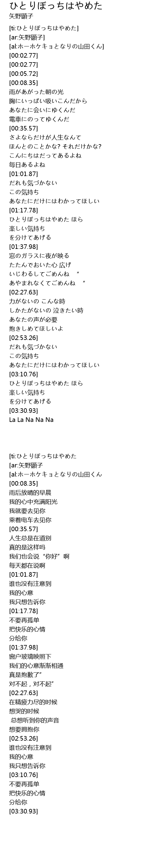 | [ti:ひとりぼっちはやめた] | |