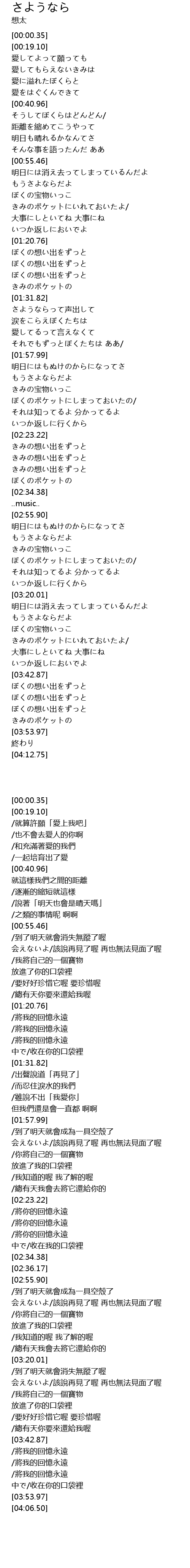 会えないよ/該說再見了喔 再也無法見面了喔 |