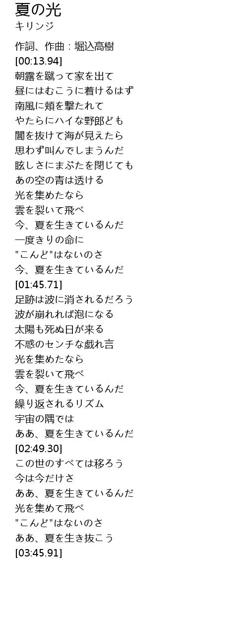 | [00:53.21] | 闇を抜けて海が見えたら |