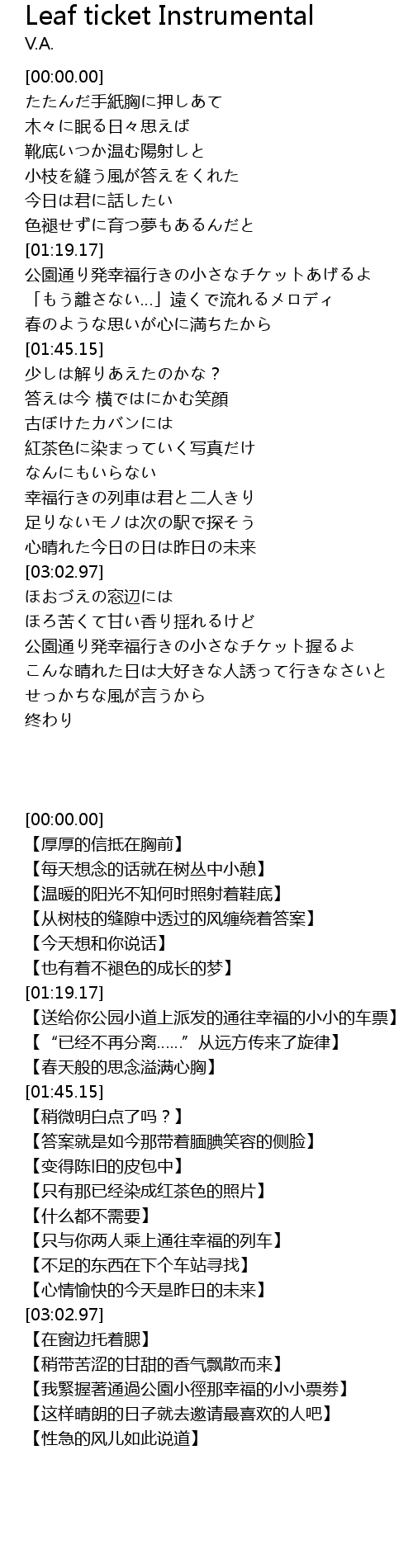 | 歌曲 | Leaf ticket Instrumental |