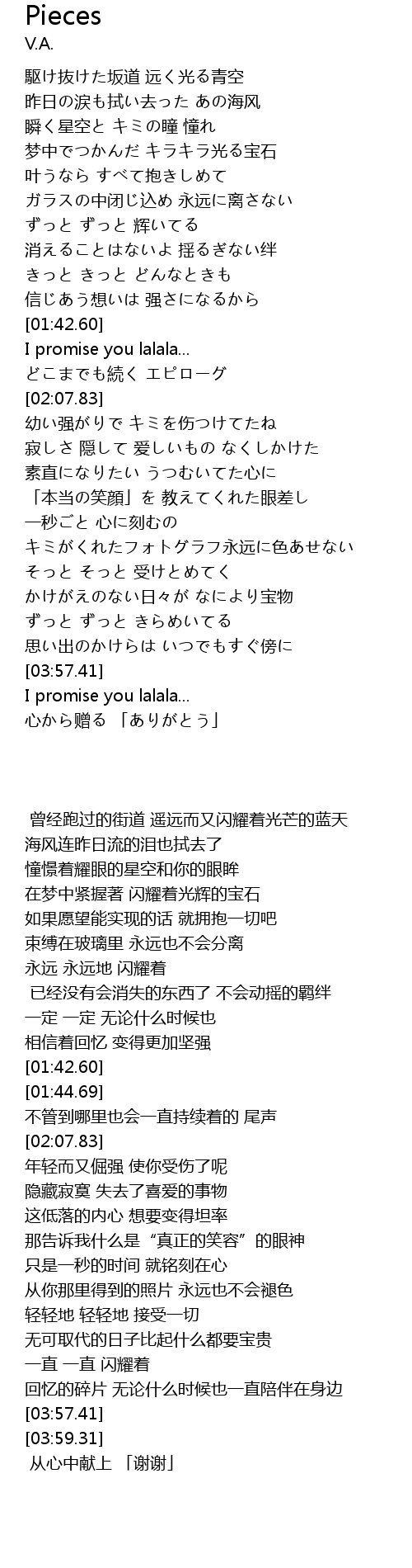 | [03:46.91] | 回忆的碎片 无论什么时候也一直陪伴在身边 |