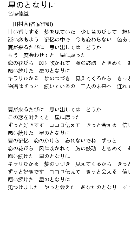 | 见つけました やっと会えた あなたのとなり ずっと |