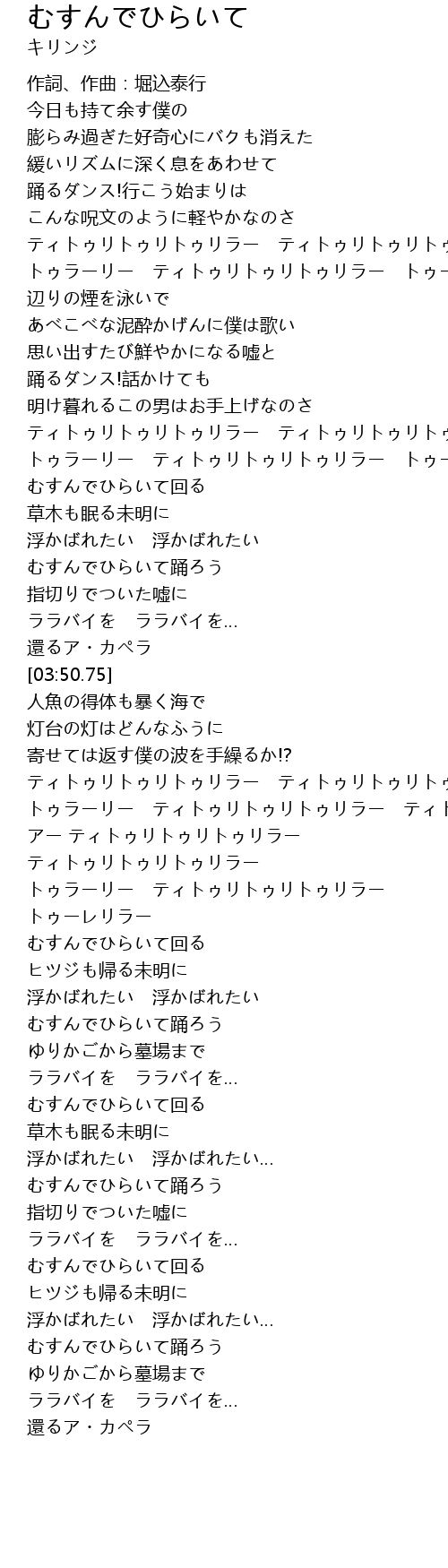 | [02:56.65] | ティトゥリトゥリトゥリラー ティトゥリトゥリトゥリラー |