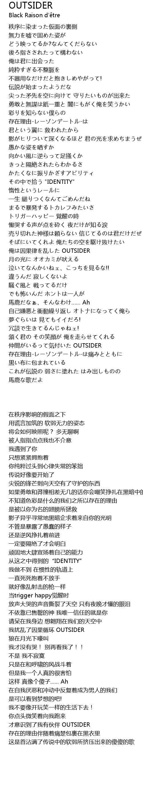 | [02:27.61] | ǎn yīn guǒ lǜ luàn OUTSIDER |