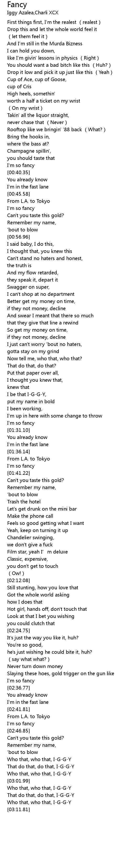 | [03:04.71] | Who that, who that, I-G-G-Y |