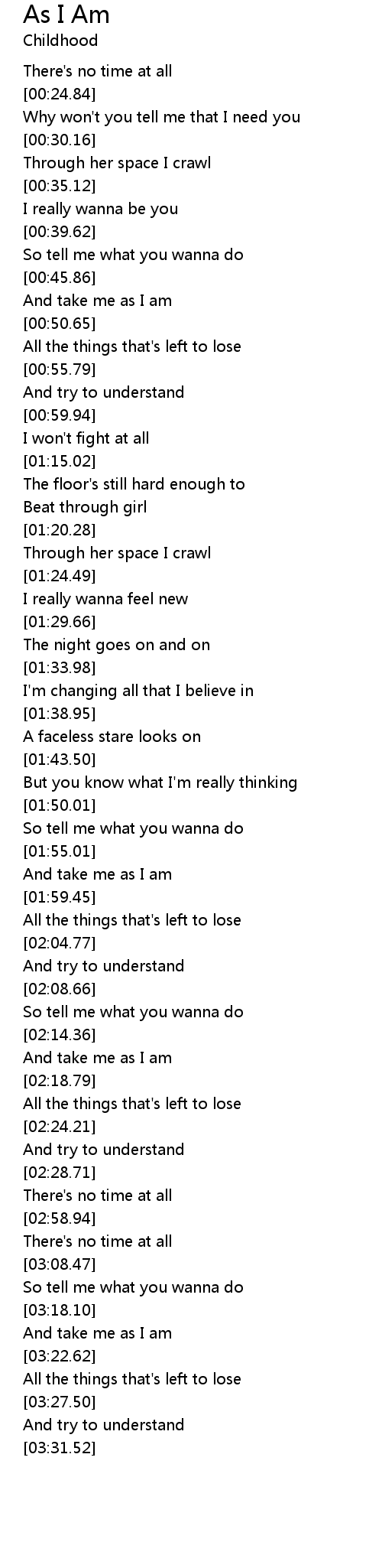 | [03:19.63] | And take me as I am |