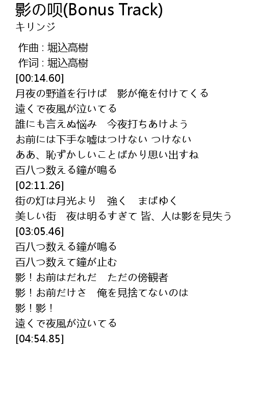 | [03:53.42] | 影!お前はだれだ ただの傍観者 |