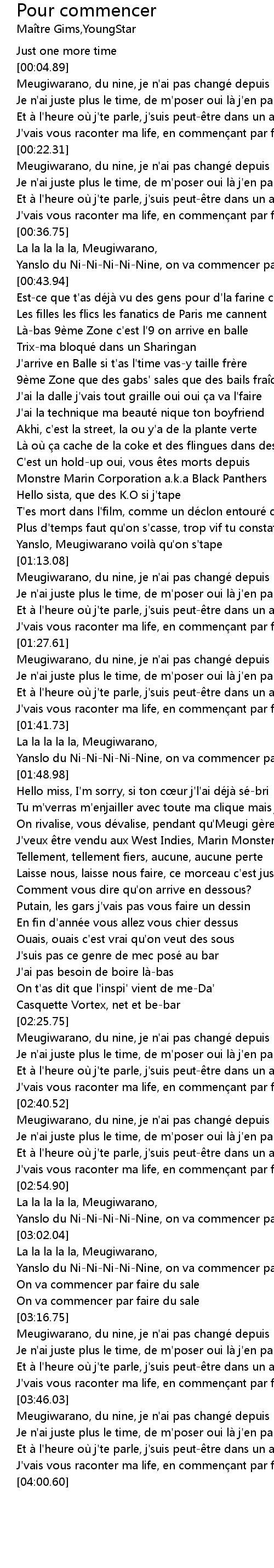 | [02:40.75] | Meugiwarano, du nine, je n' ai pas change depuis |