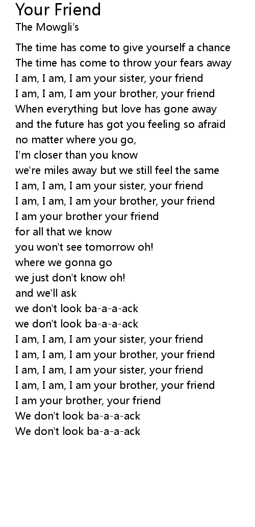 I am, I am, I am your brother, your friend |