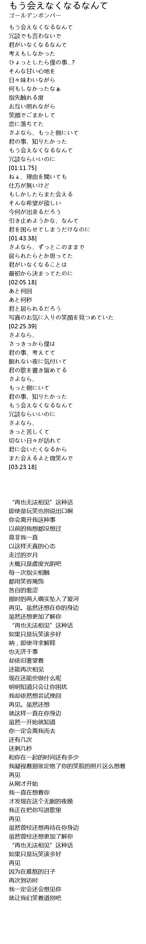 | [00:55.56] | 再见。虽然还想在你的身边 |
