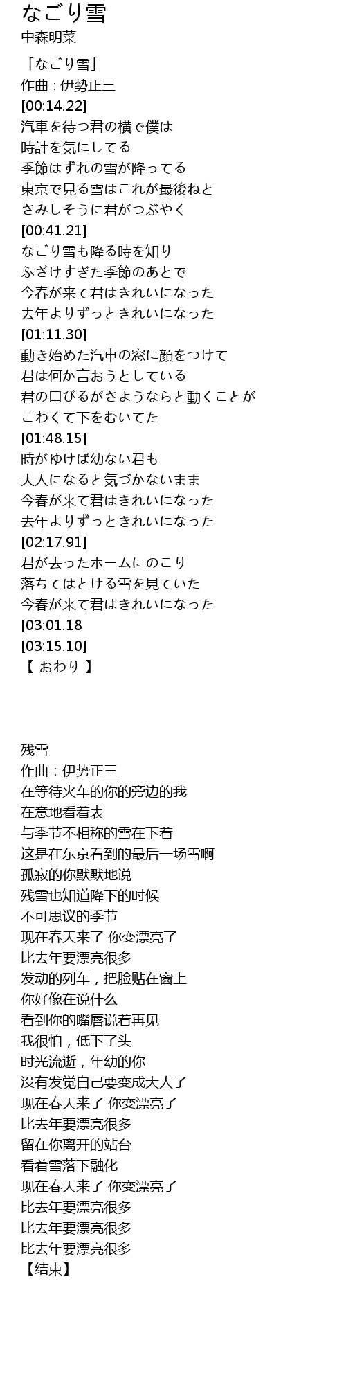 | [02:37.99] | 落ちてはとける雪を見ていた |