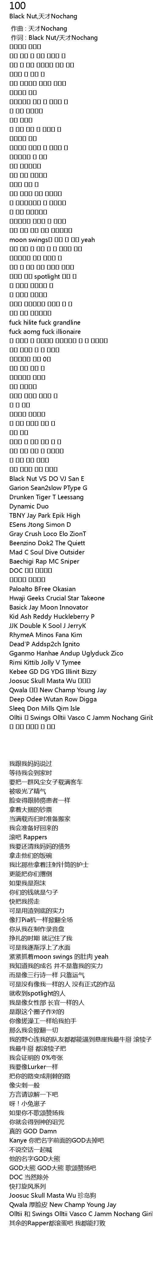 | [00:01.00] | 作词 : Black Nut/天才Nochang |