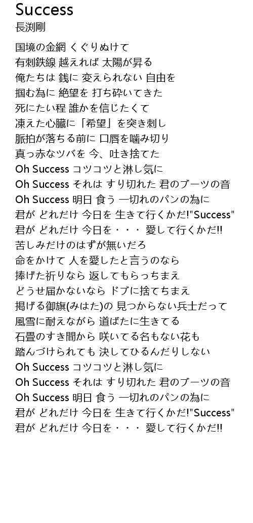| 君が どれだけ 今日を 生きて行くかだ!"Success" | |