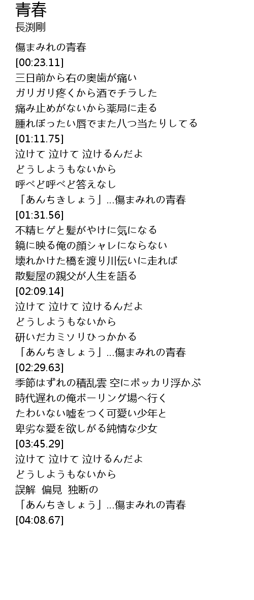 | [03:58.05] | 「あんちきしょう」…傷まみれの青春 |