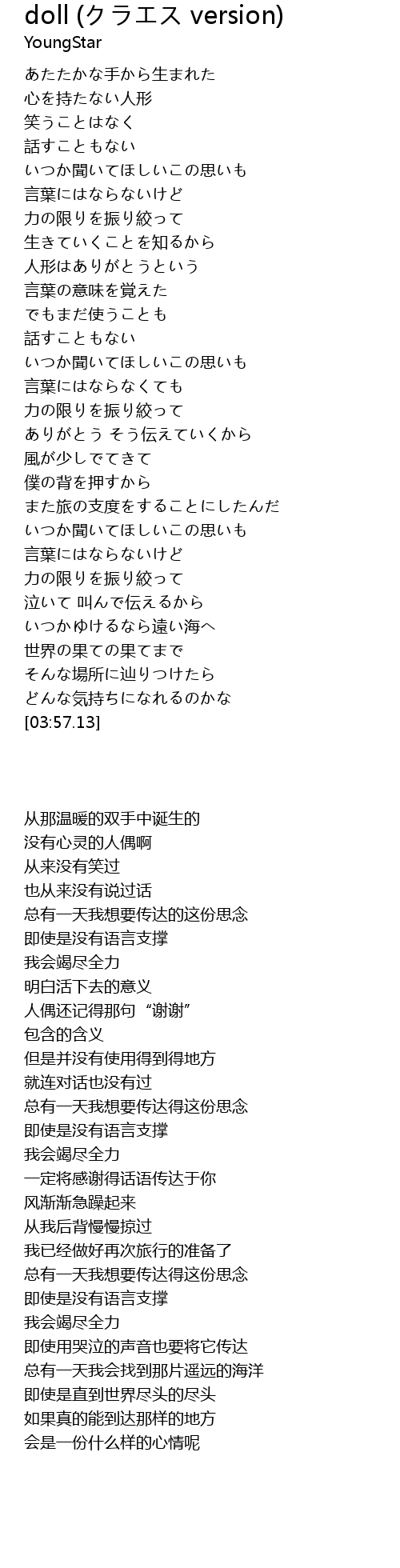 | [01:30.92] | 人偶还记得那句“谢谢” |