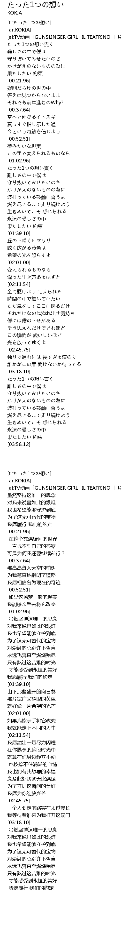 | [02:19.91] | ただ息をしてここに居るだけ |