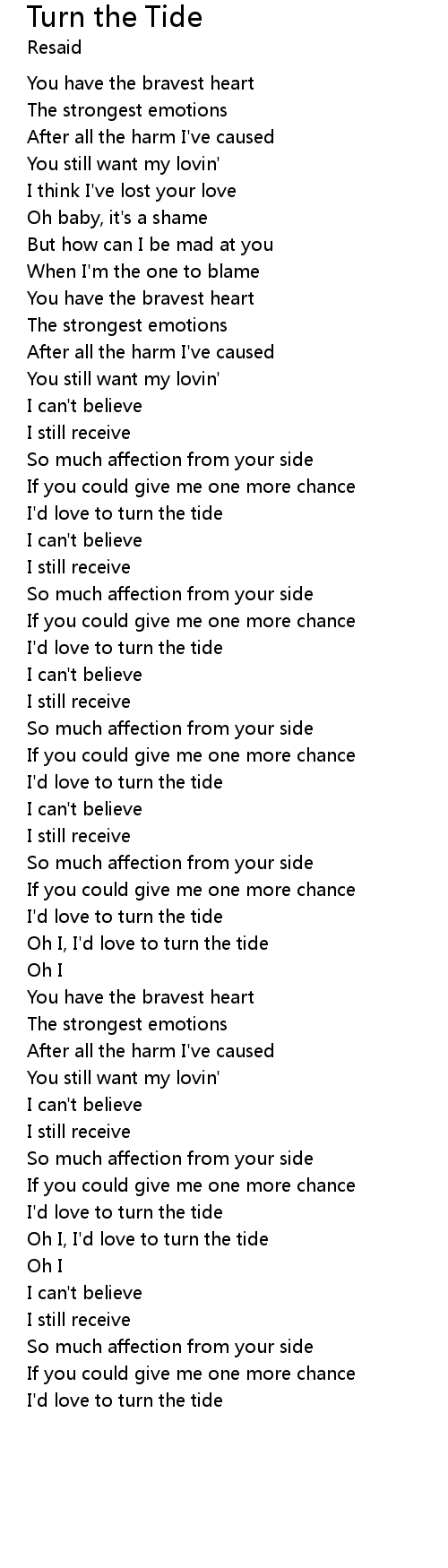 Oh I, I'd love to turn the tide |