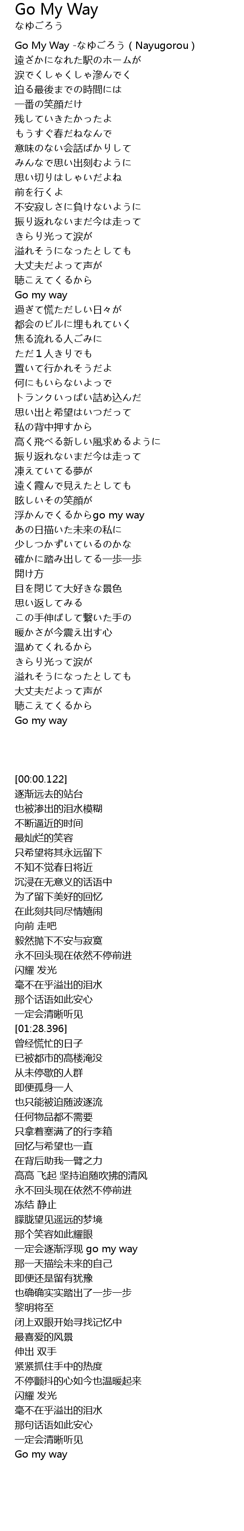 | [00:00.122] | Go My Way Nayugorou |