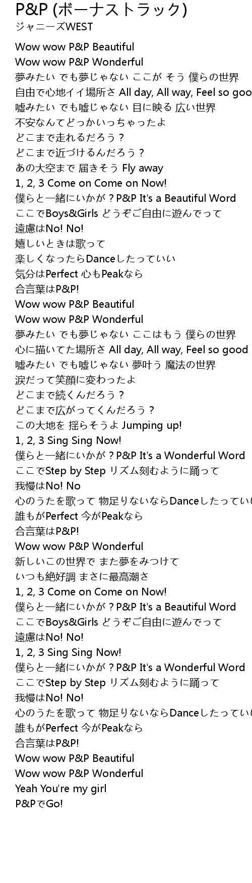 | [03:20.49] | 僕らと一緒にいかが?P&P It's a Beautiful Word |