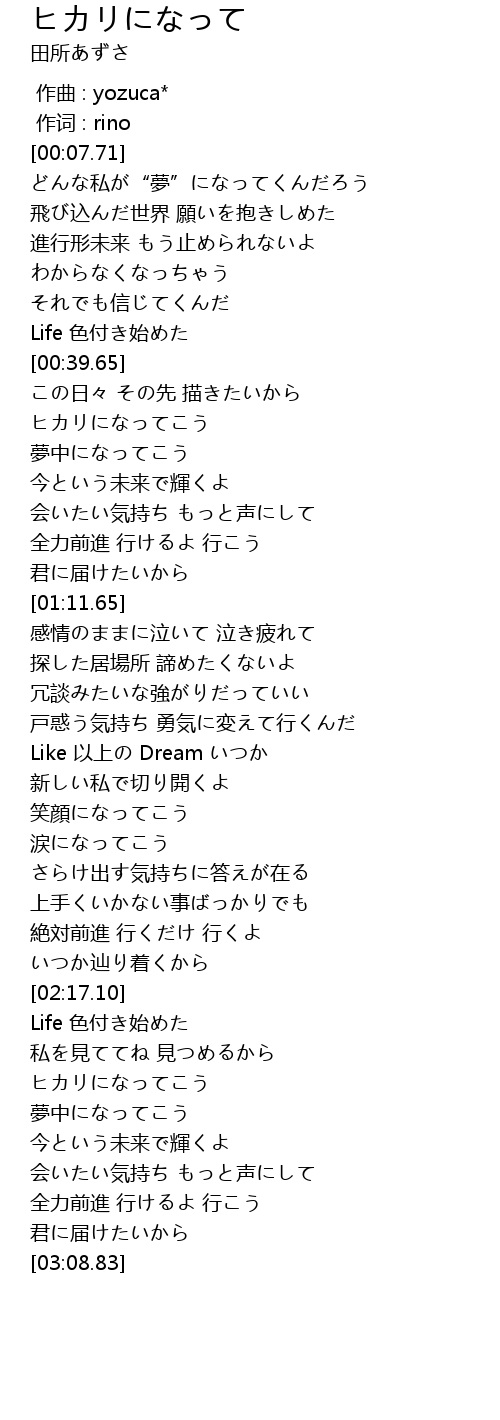 | [00:12.58] | どんな私が“夢”になってくんだろう |
