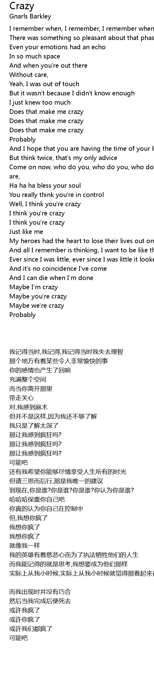 歌曲 Crazy