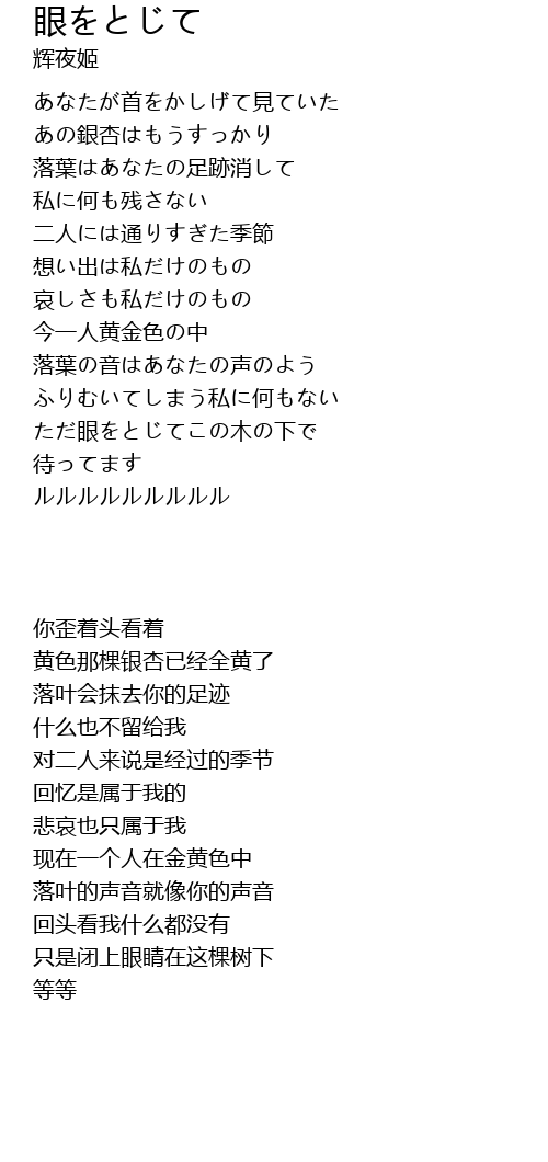 | [02:09.03] | ただ眼をとじてこの木の下で |
