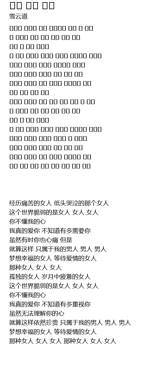 | [00:36.05] | 这个世界脆弱的是女人 女人 女人 |