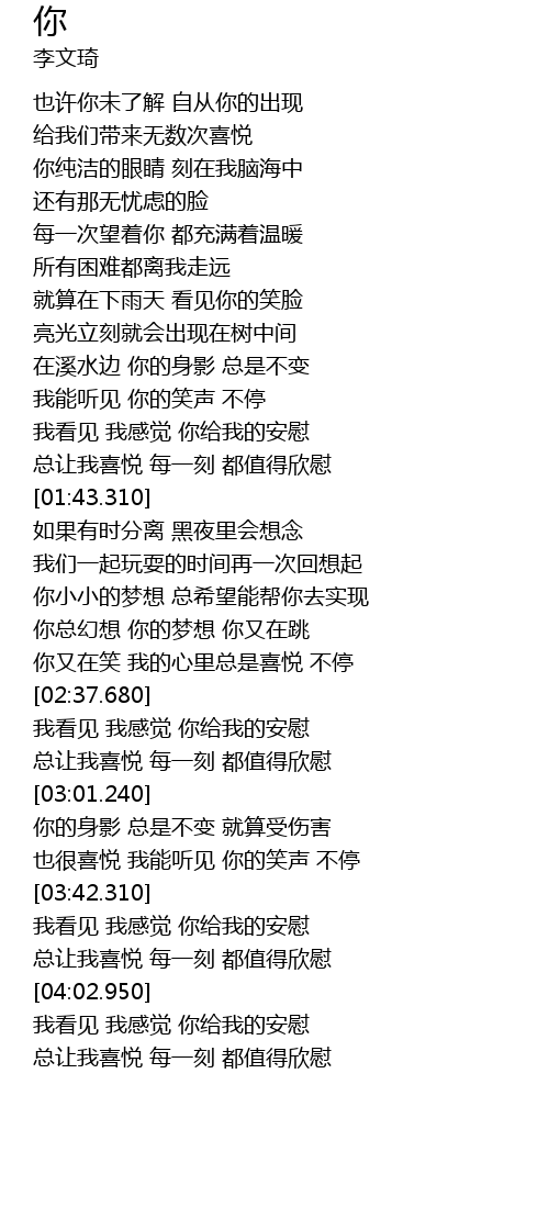 | [03:43.990] | 我看见 我感觉 你给我的安慰 |