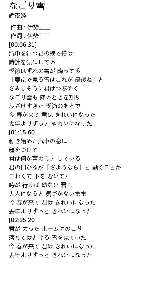 | [01:55.62] | 今 春が来て 君は きれいになった |
