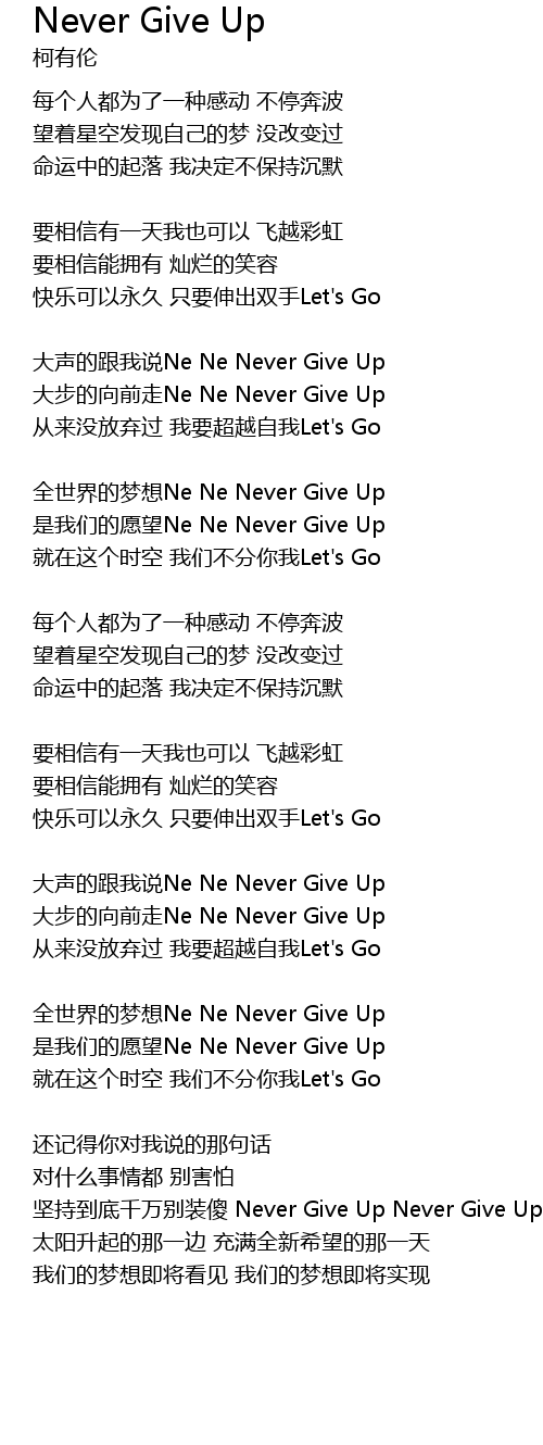 | 歌曲 | Never Give Up |