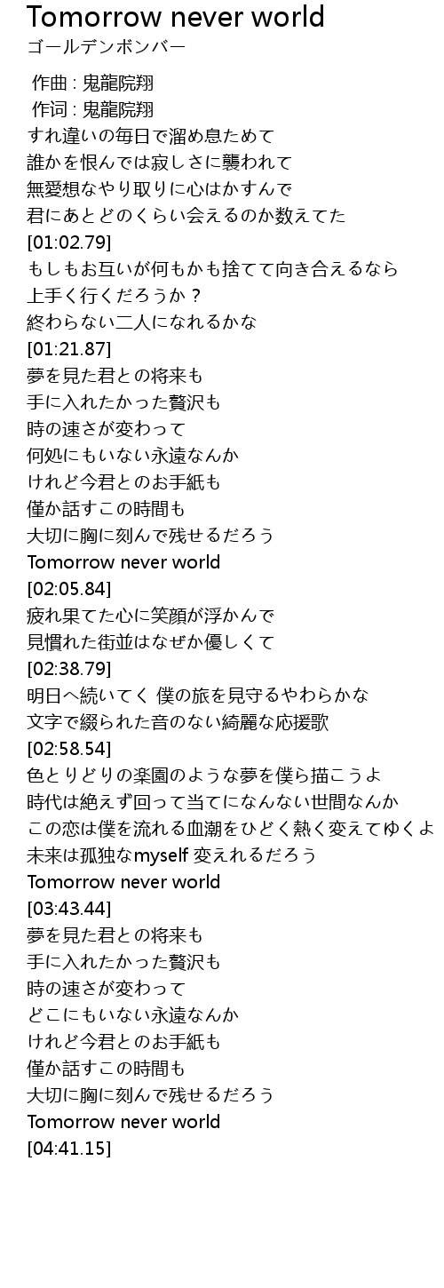 | [04:35.31] | Tomorrow never world |
