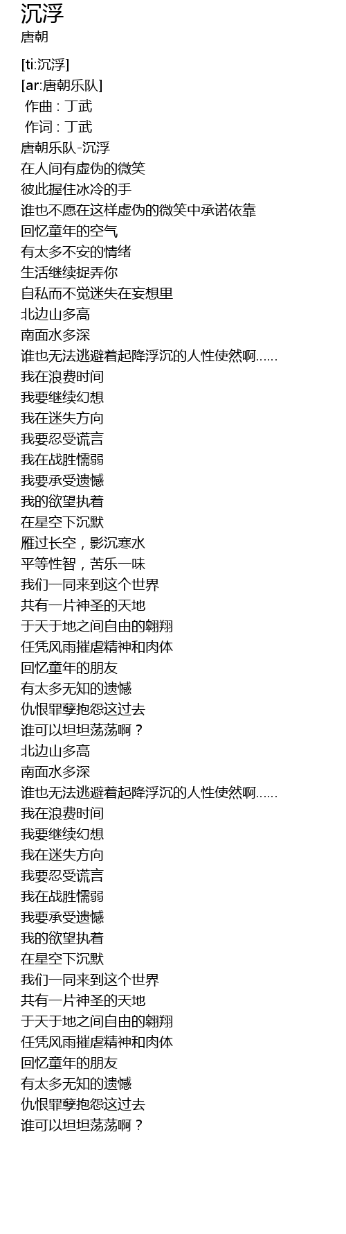 | [00:09.509] | 唐朝乐队-沉浮 |