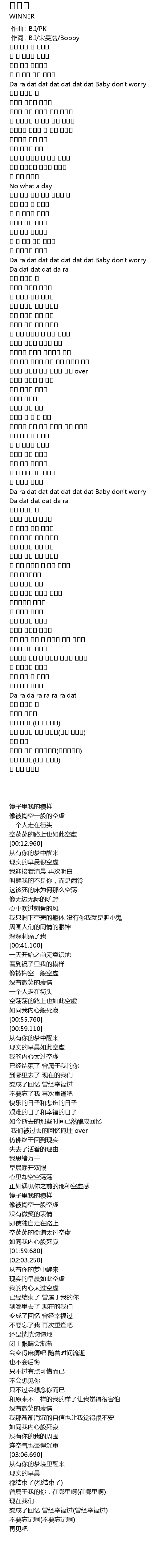 | [00:00.490] | zuo ci : B. I song min hao Bobby |