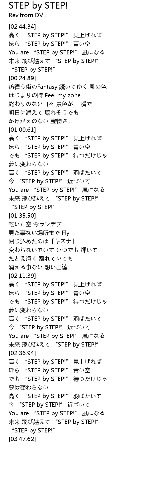 | [03:05.25] | " STEP by STEP!" dài |
