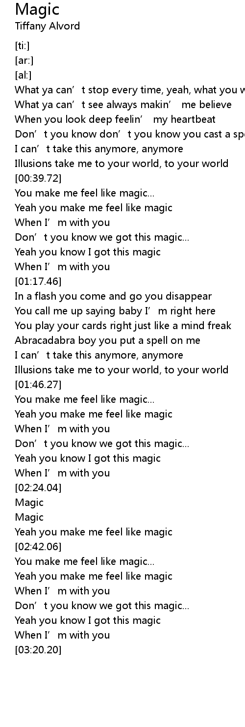 | [01:30.06] | Abracadabra boy you put a spell on me |