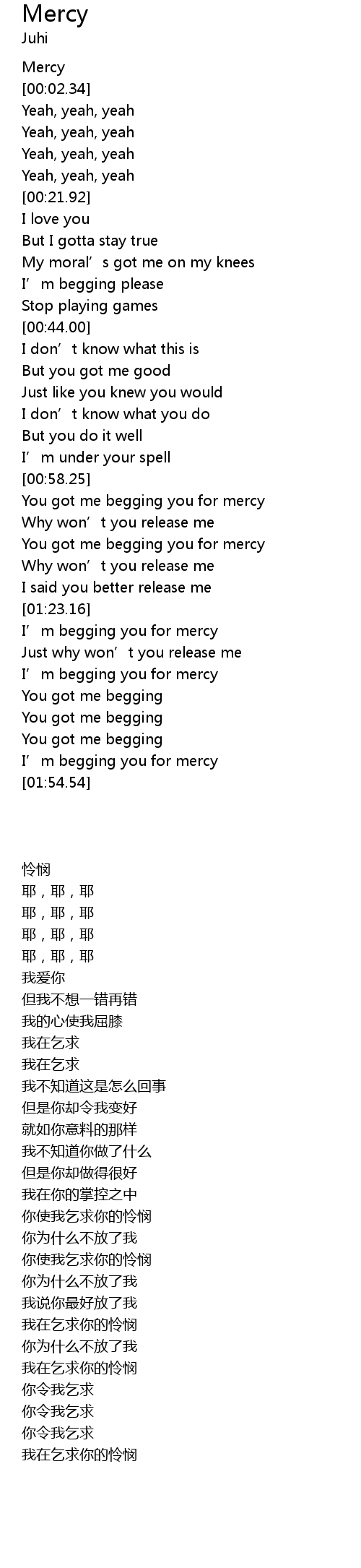 | [01:44.89] | I’m begging you for mercy |