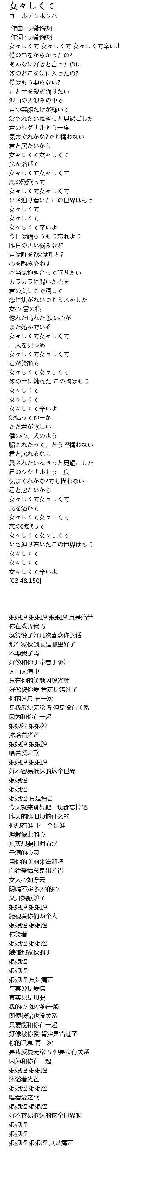 | [03:34.390] | 娘娘腔 娘娘腔 |