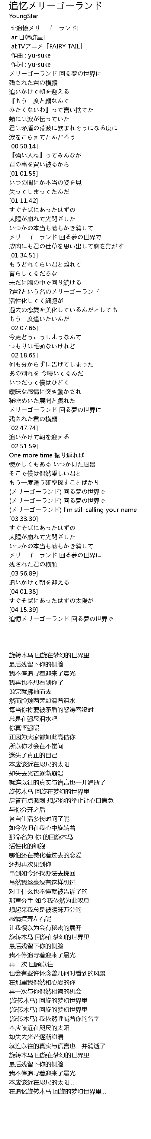 | [04:23.61] | 追憶メリーゴーランド 回る夢の世界で |