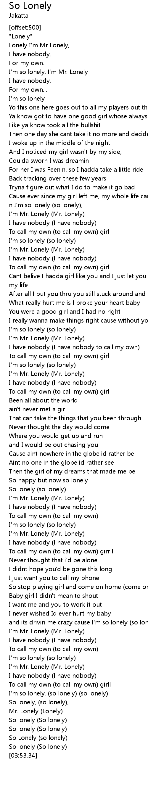 [03:33.47] I'm so lonely, (so lonely) (so lonely)