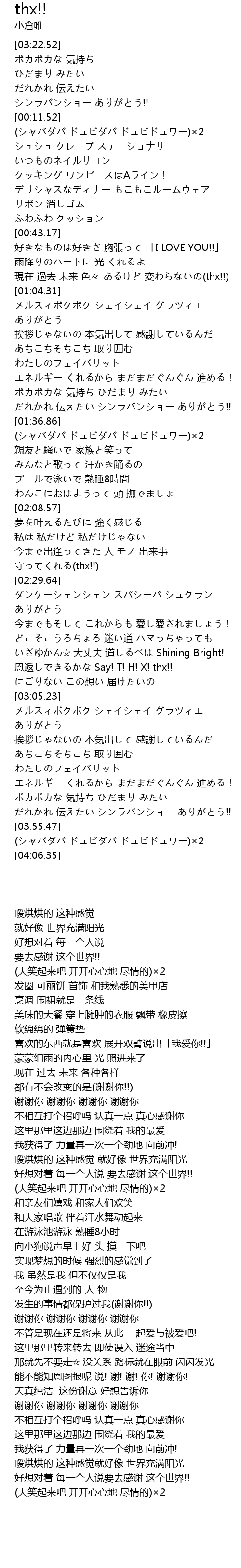 | [02:51.59] | 恩返しできるかな Say! T! H! X! thx!! |
