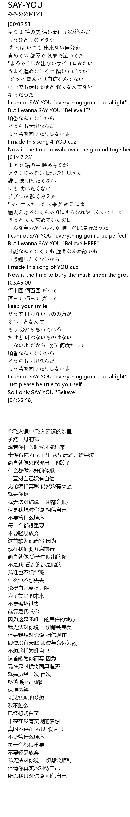 | [04:47.49] | So I only SAY YOU "Believe" |