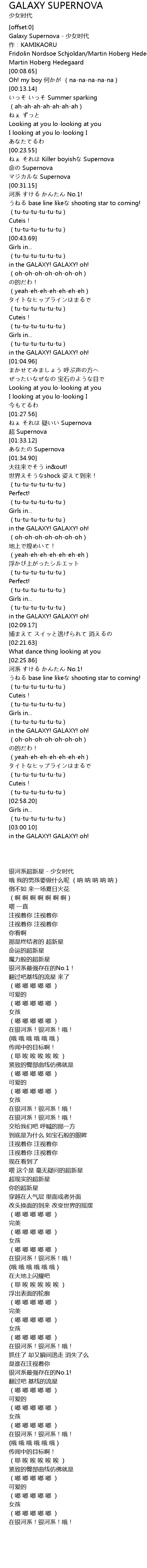 | [00:00.53] | Galaxy Supernova shào nǚ shí dài |